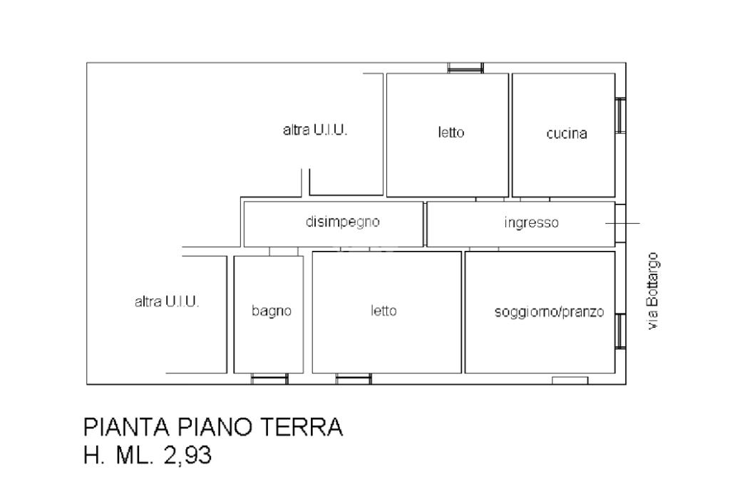 Al piano terra: TRILOCALE composto da ingresso indipendente con cucina abitabile, soggiorno, camera matrimoniale, camera 3/4 e bagno.